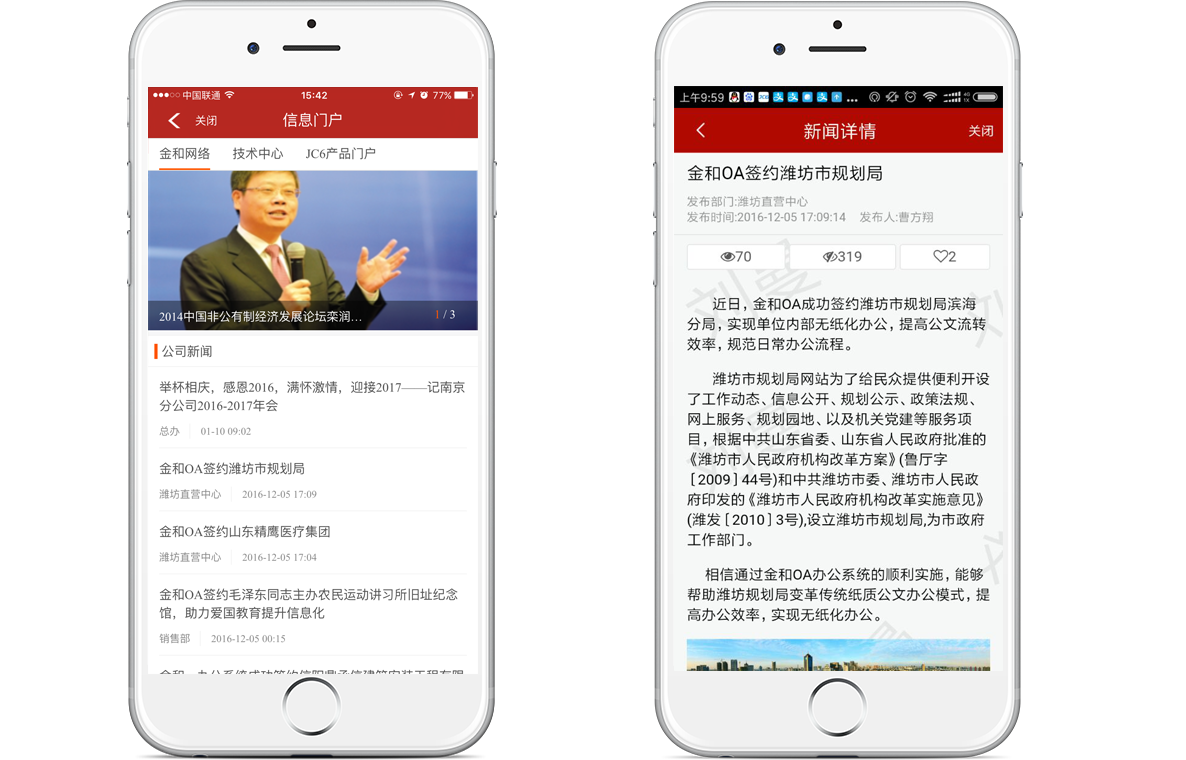 金和移動辦公OA系統(tǒng)支持IOS、Android等主流操作的手機系統(tǒng),集門戶、尋呼、日記、通訊錄、任務、流程(發(fā)起、待辦、已辦、待閱)、知識、日程、考勤、外勤、門戶、駕駛艙等應用為一體。