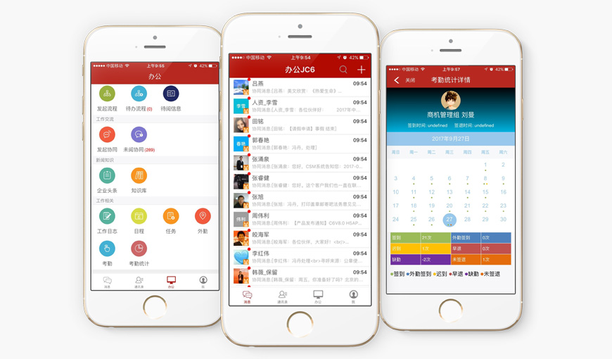 金和移動辦公OA系統(tǒng)支持IOS、Android等主流操作的手機系統(tǒng),集門戶、尋呼、日記、通訊錄、任務、流程(發(fā)起、待辦、已辦、待閱)、知識、日程、考勤、外勤、門戶、駕駛艙等應用為一體。